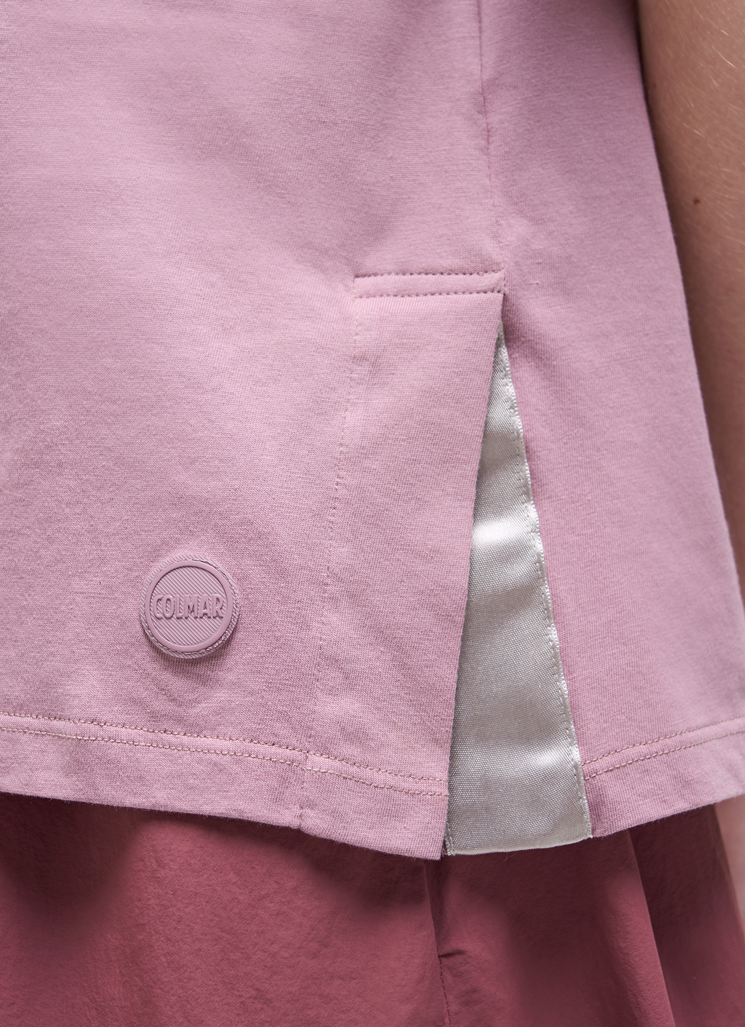Il design classico di questa t-shirt da donna si arricchisce di un tocco femminile e ricercato grazie agli spacchetti laterali, rifiniti con nastro effetto raso. Realizzata in morbido jersey di cotone, garantisce leggerezza e comfort nelle giornate più calde. Perfetta da abbinare ai capi della collezione per un look completo e distintivo.