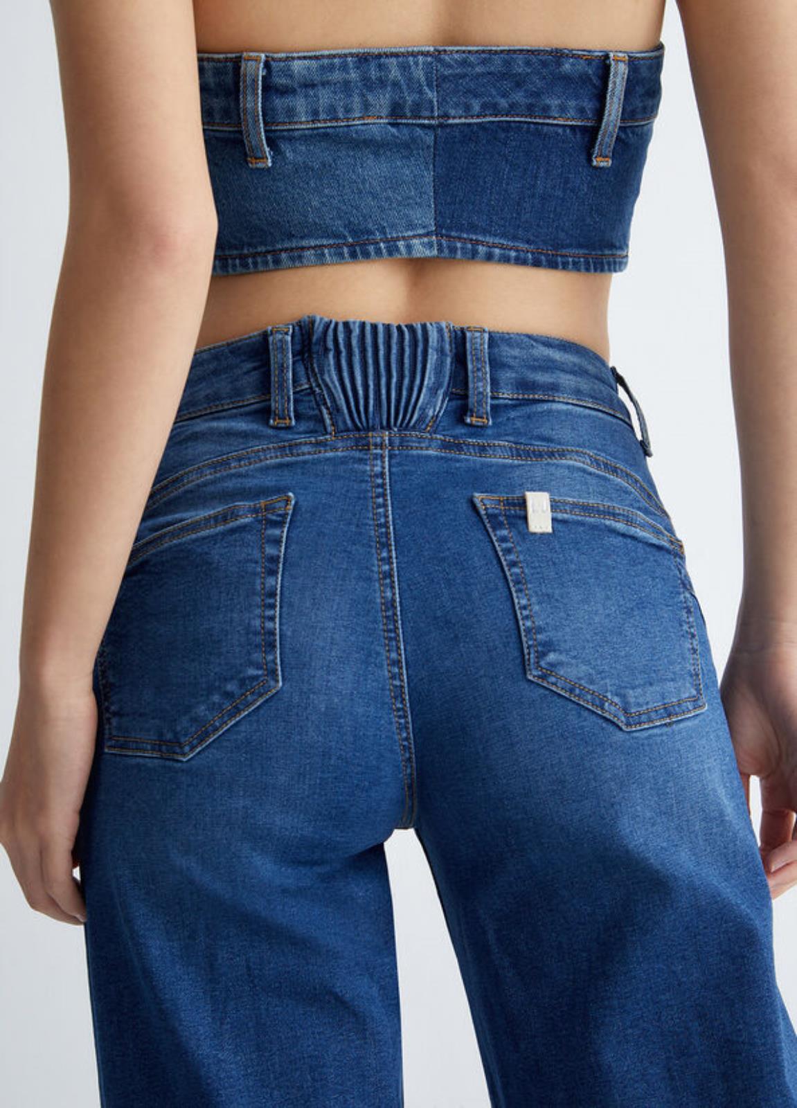Ecosostenibile e dal design super glam: questo jeans bottom up conquista il podio dei bottom di tendenza grazie al taglio comfy nel classico lavaggio blu denim.