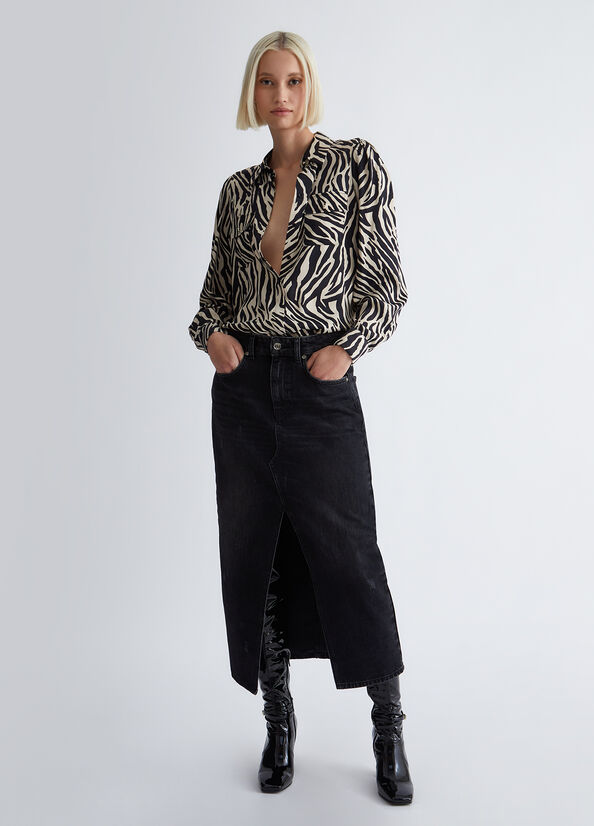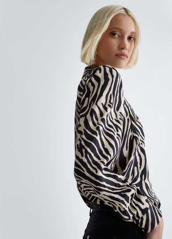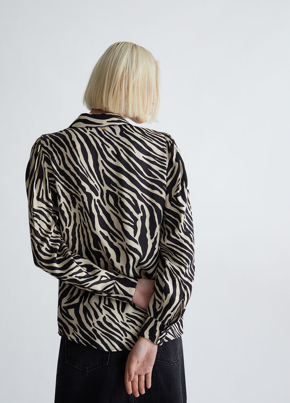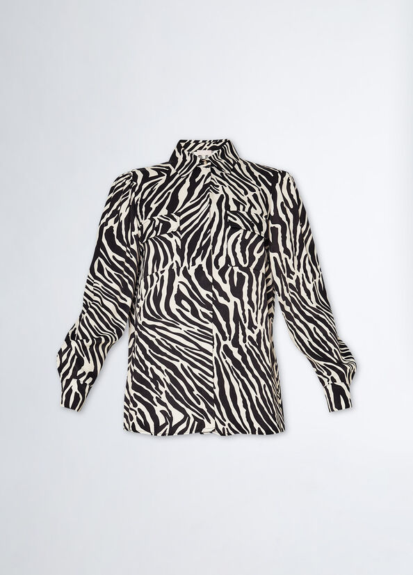 Less Impact, same style. Femminilità e glamour si traducono in amore e rispetto per l'ambiente, oggi più che mai. Inserita all'interno della proposta di collezione "Liu Jo Better", questa camicia dalla stampa zebrata è realizzata con almeno il 70% di fibre naturali provenienti da agricoltura biologica. Be Better, do better.