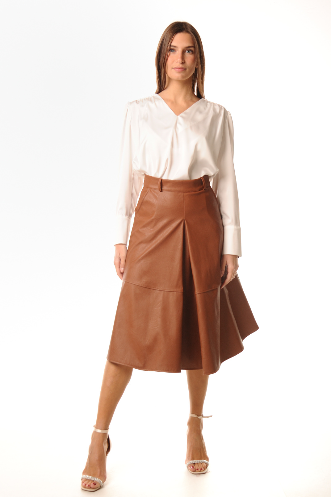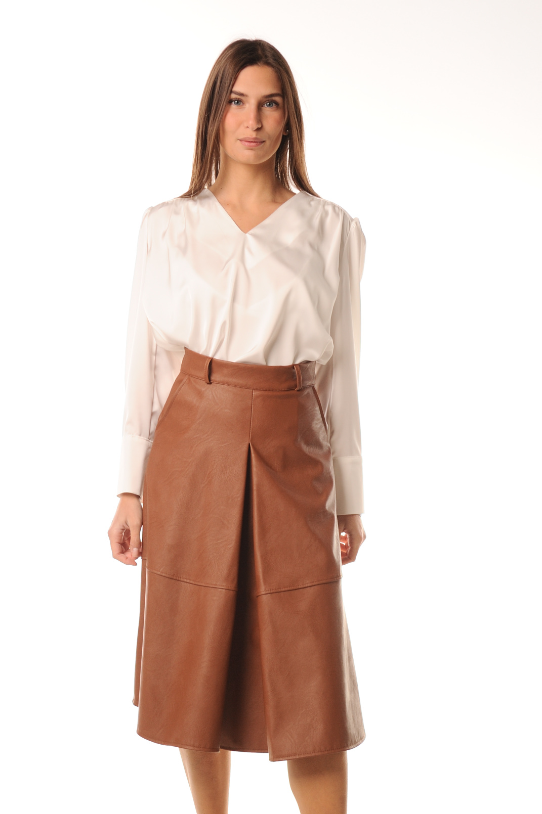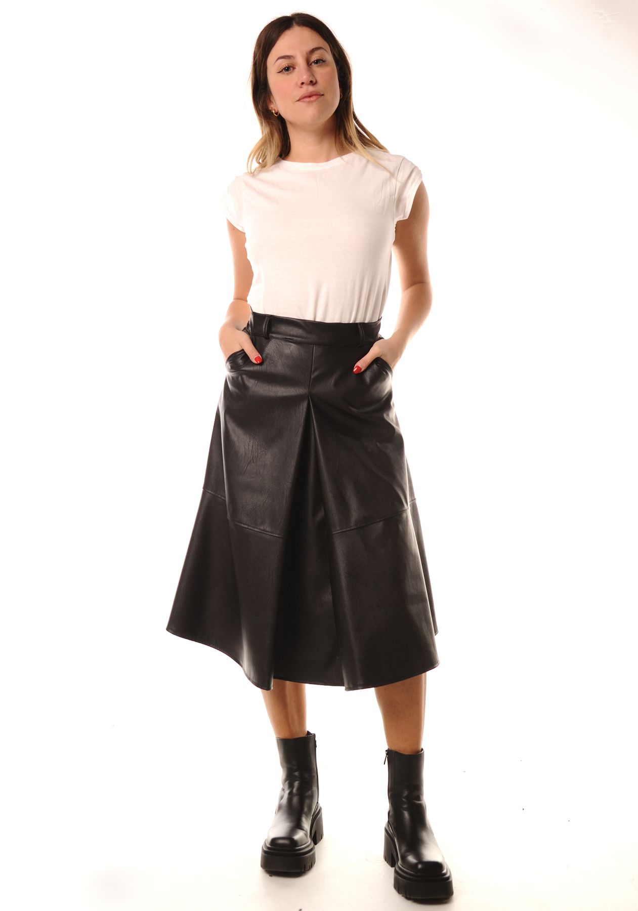 GONNA MIDI EFFETTO PELLE CON PINCES